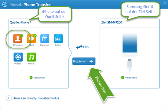 Es ist mit Sicherheit aufregend, von einem alten iPhone zu einem brandneuen Samsung-Gerät zu wechseln. Aber es ist etwas mühsam, alle iPhone Kontakte ohne Drittanbieter-Tools auf das Samsung-Handy zu übertragen. Selbstverständlich können Sie sie mit iTunes zu synchronisieren, die Kontakte anschließend exportieren und dann auf Ihrem Computer speichern, um sie auf Ihrem Samsung Gerät zu importieren. Aber das funktioniert nicht ohne Internetverbindung. Wenn Sie sich also um die Sicherheit Ihrer Daten Sorgen machen, dann gibt es ein Tool, dass Ihren Bedürfnissen enstpricht – Jihosoft Handy-Datentransfer.