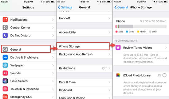 3. Si el almacenamiento de su iPhone no tiene suficiente espacio para la actualización de iOS 12, entonces necesita eliminar algunas aplicaciones o archivos grandes para liberar espacio de su dispositivo iOS.